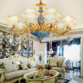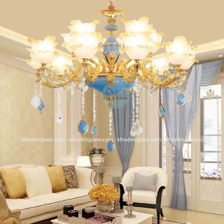 Một số hình ảnh của đèn chùm hợp kim xanh ngọc DC927