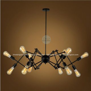– Đèn trang trí Edison , đèn chùm thả sắt hình chân nhện cứng đối xứng có các loại như sau:
