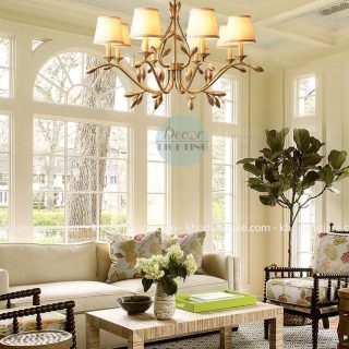 Một số hình ảnh của đèn chùm đồng chao vải DC3968D