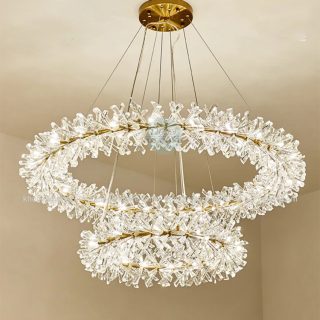 Sản phẩm Đèn chùm pha lê phòng khách bông tuyết DC420 có loại 1 vòng và loại 2 vòng.