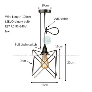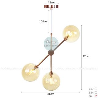 – Vật liệu thân đèn: Hợp kim mạ, chao thủy tinh ( màu hổ phách, khói, đục).