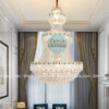 Sự kết hợp hài hòa giữa sắc vàng ánh kim của khung đèn và độ trong suốt lấp lánh của pha lê mang lại vẻ đẹp quý phái, đẳng cấp, phù hợp với những không gian thông tầng sang trọng như sảnh biệt thự, khách sạn 5 sao hay phòng khách trần cao. Đây không chỉ là một thiết bị chiếu sáng mà còn là điểm nhấn kiến trúc, thể hiện gu thẩm mỹ và đẳng cấp của gia chủ.
