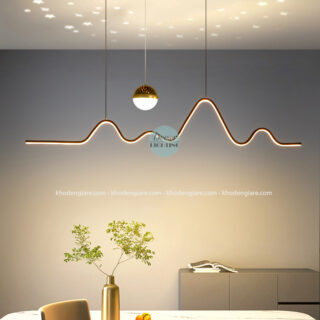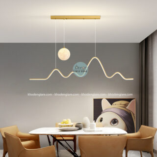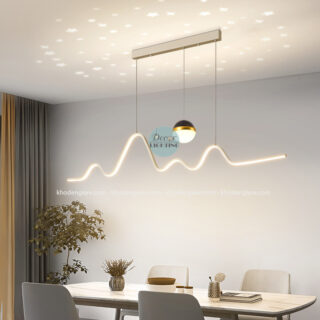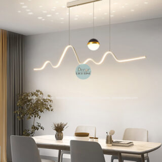 Đèn thả bàn ăn DC345 là mẫu đèn trang trí hiện đại, nổi bật với thiết kế dạng sóng mềm mại kết hợp cùng quả cầu ánh sáng độc đáo, tạo điểm nhấn nghệ thuật cho không gian nội thất. Phù hợp cho bàn ăn, đảo bếp hoặc khu vực làm việc cần sự tinh tế và sáng tạo.
