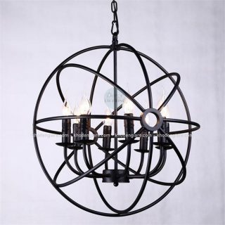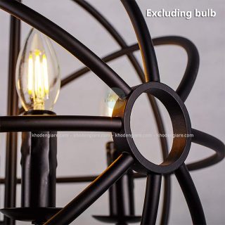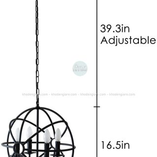 Đặc điểm: Lồng hình cầu sơn tĩnh điện màu đen , bên trong có chùm đui điện, sử dụng bóng nến hoặc bóng nhót
