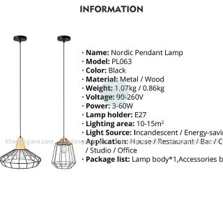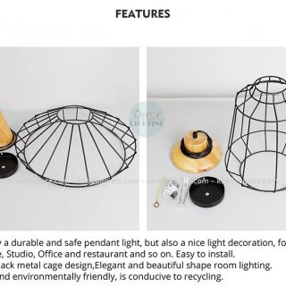 Thông số chi tiết Đèn thả trang trí đuôi gỗ lồng sắt Retro DC027