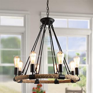 Một số hình ảnh của đèn thả decor vòng tròn quấn thừng DC202