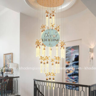 Đèn Thả Thông Tầng Pha Lê Hoa Vàng DC-8150 là kiệt tác chiếu sáng mang vẻ đẹp sang trọng và tinh tế. Thiết kế lấy cảm hứng từ những đóa hoa vàng rực rỡ kết hợp cùng các ống pha lê long lanh, tạo hiệu ứng ánh sáng lấp lánh như thác nước ánh kim giữa không gian. Sự kết hợp hài hòa giữa sắc vàng ấm áp và pha lê trong suốt giúp tôn vinh vẻ đẹp xa hoa, phù hợp cho sảnh thông tầng, biệt thự, khách sạn và các không gian đẳng cấp.