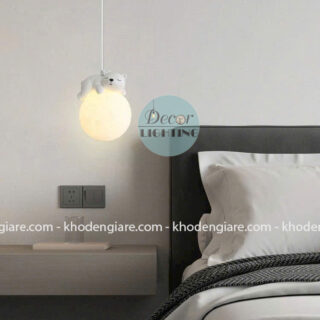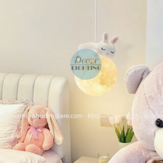 Thiết kế độc đáo với bóng đèn hình mặt trăng sáng dịu, phía trên được tô điểm bằng tượng phi hành gia tinh xảo, gợi cảm hứng khám phá vũ trụ. Dây thả chắc chắn, gam màu hiện đại dễ dàng kết hợp nhiều phong cách nội thất khác nhau.