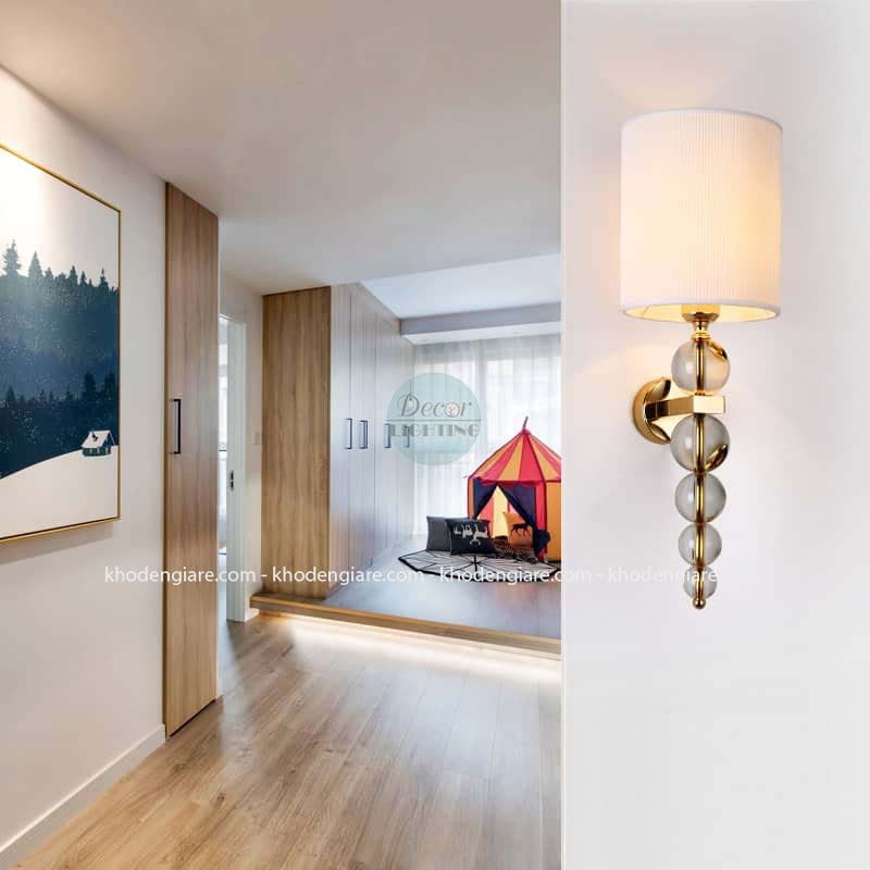 Đèn tường trang trí, là một sản phẩm rất linh hoạt với những tính năng giúp trang trí không gian phòng khách, trang trí hành lang, cầu thang, trang trí phòng ngủ…Sản phẩm Đèn tường decor phong cách tân cổ điển DC709 với chất liệu kim loại si vàng-thuỷ tinh+chao vải, linh hoạt-dễ dàng trong việc lắp đặt, cùng nguồn sáng tốt, độ bền cao sẽ giúp cho việc tìm kiếm đèn treo tường phòng khách, phòng ngủ, trang trí quán cafe, nhà hàng, shop… trở nên dễ dàng hơn