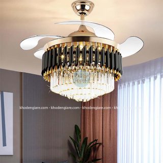 Quạt trần đèn cánh cụp pha lê cao cấp DC9019 được thiết kế theo phong cách nội thất hiện đại, phù hợp với nhiều không gian trong nhà. Cấu trúc đèn hiện đại sử dụng cánh xòe ra khi bật, và cụp vào khi tắt, mang đến tiện nghi cho những không gian vừa và nhỏ gia đình bạn. Phần đèn trang trí là sự kết hợp giữa kiểu dáng đèn mâm và đèn chùm, sử dụng những thanh pha lê, khi bật đèn tạo ra những khúc xạ ánh sáng lấp lánh, lung linh cho không gian phòng khách.