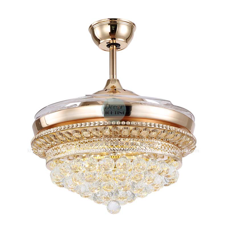 Sản phẩm quạt trần đèn chùm phong cách sang trọng DC9021 được thiết kế theo dạng hiện đại và theo kiểu của một bông hoa. Xung quanh đèn được đính các hạt pha lê và phần dưới được đính với pha lê có hình oval, tất cả đều có mặt cắt hình kim cương nhằm tạo ra nhiều ánh sáng lấp lánh.